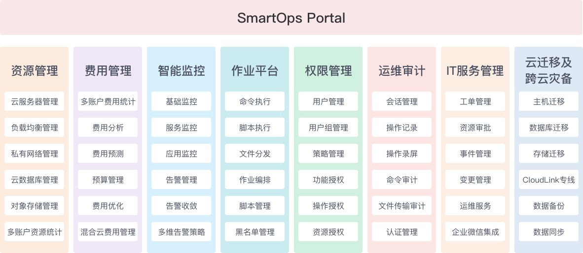 希望通过SmartOps平台结合专业的云计算技术团队和开放互联的云连接网络帮助企业用户加速云端创新,帮助合作伙伴改善业务落地交付和服务支持能力,助推行业专注于云计算最后一公里落地。为此,SmartOps多云管理平台应运而生。