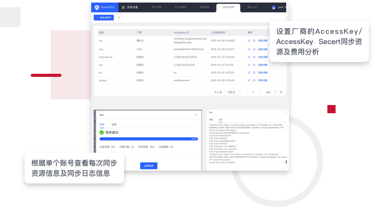 SmartOps可以使用统一dashboard来统一管理单一或多云平台的云资源以及IDC资源,如腾讯云、华为云、AWS、Azure、阿里云等。 您不需要在不同的云管理平台中反复切换,就可以轻松管理在各种云环境中运行的应用程序和资源。