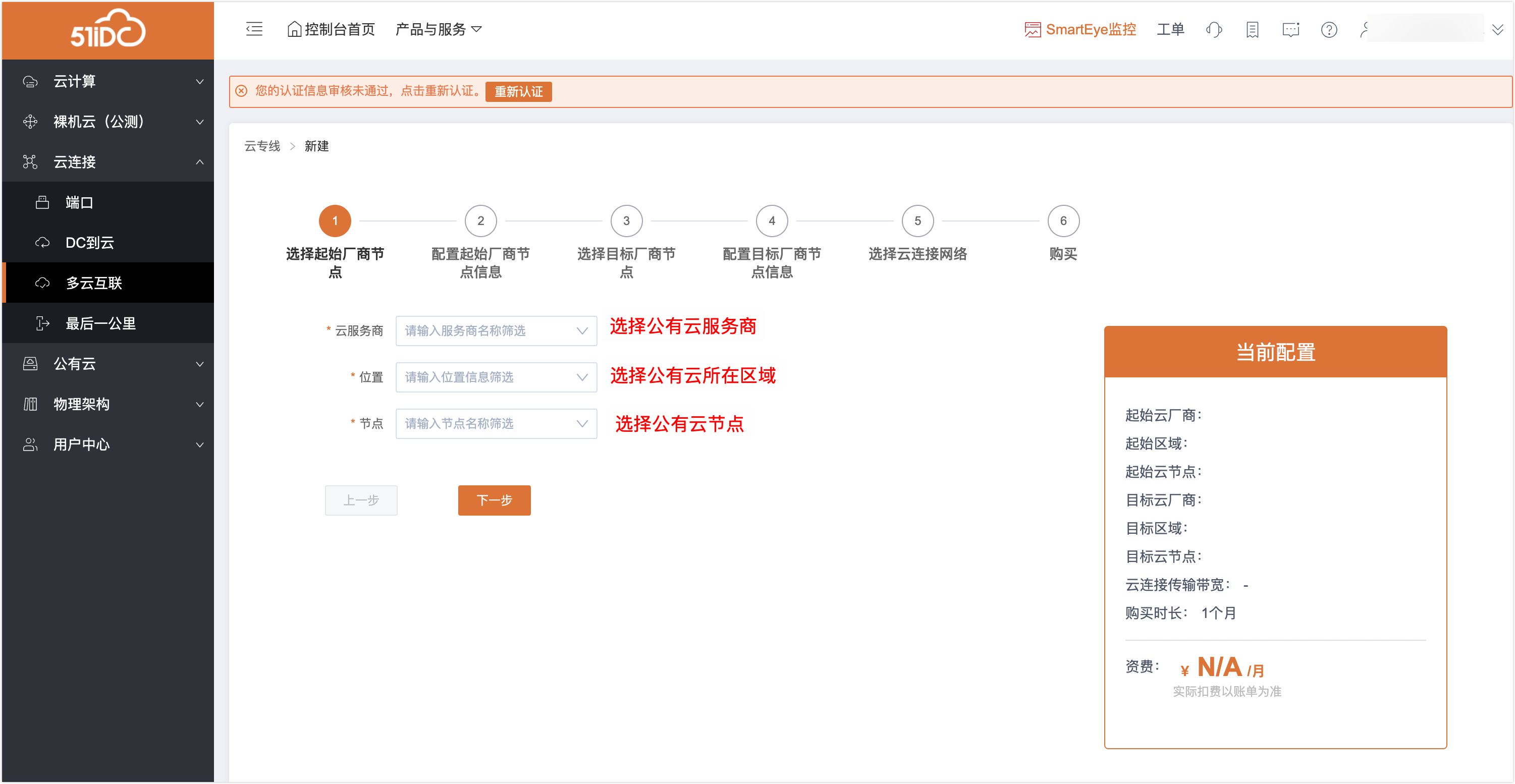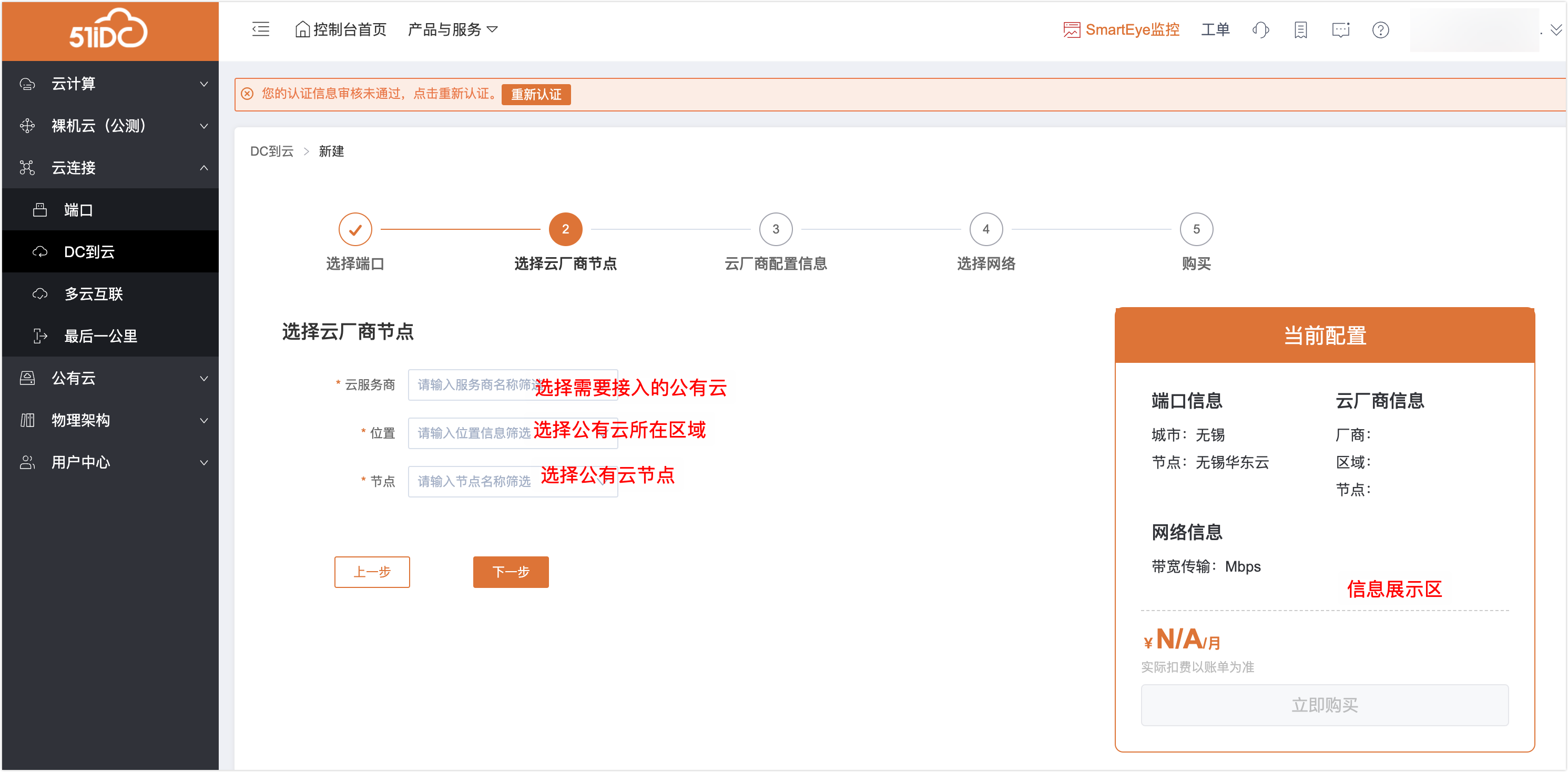 3、第二步:选择云厂商节点