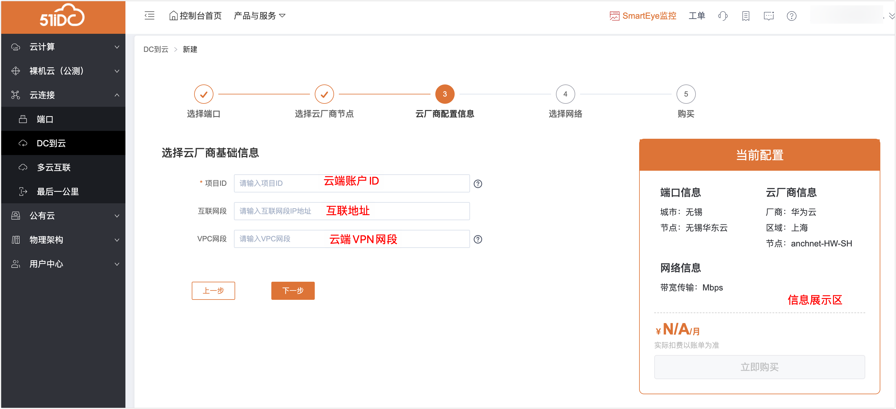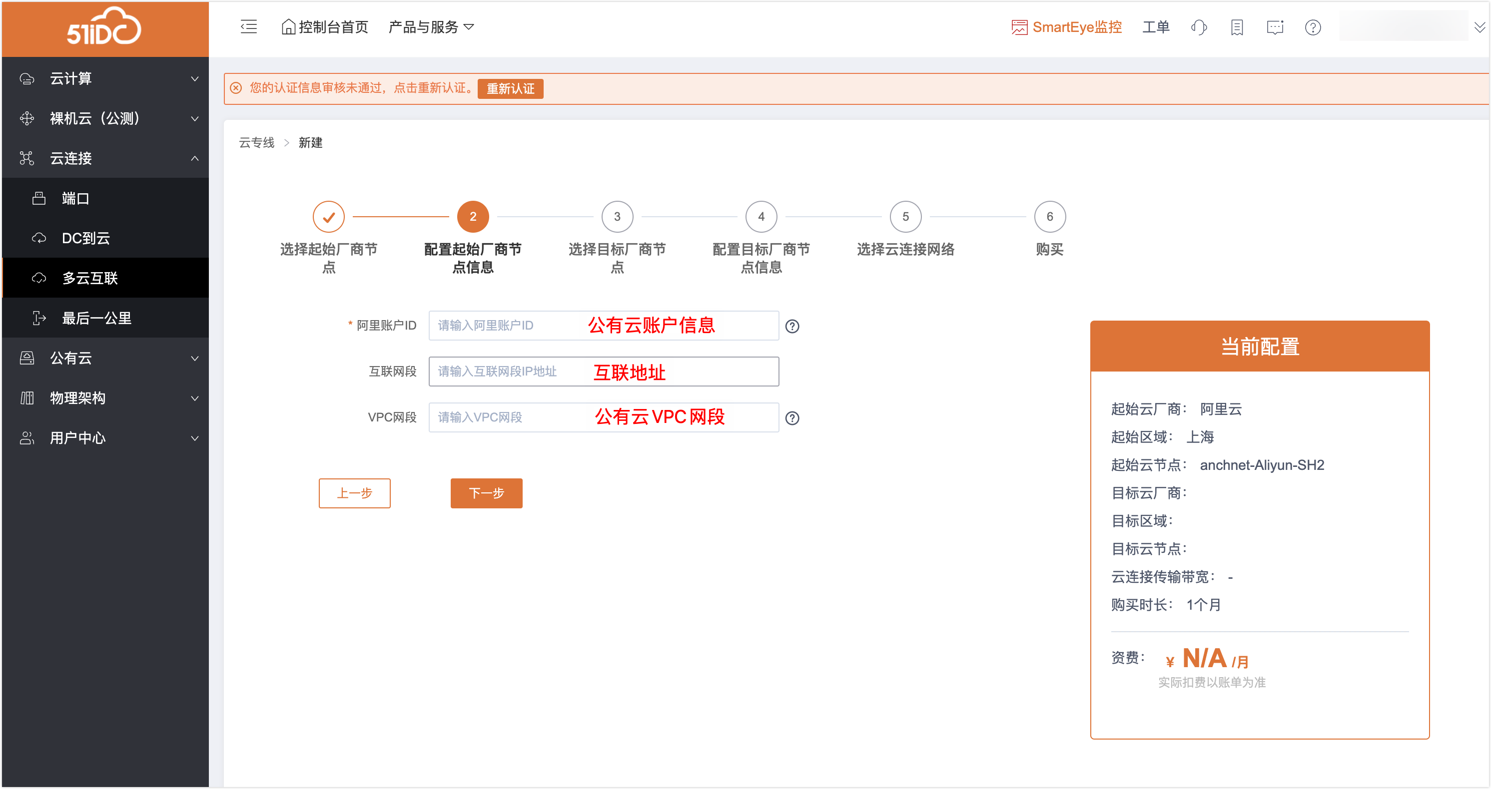 5、第四步:填写目标云厂商信息
