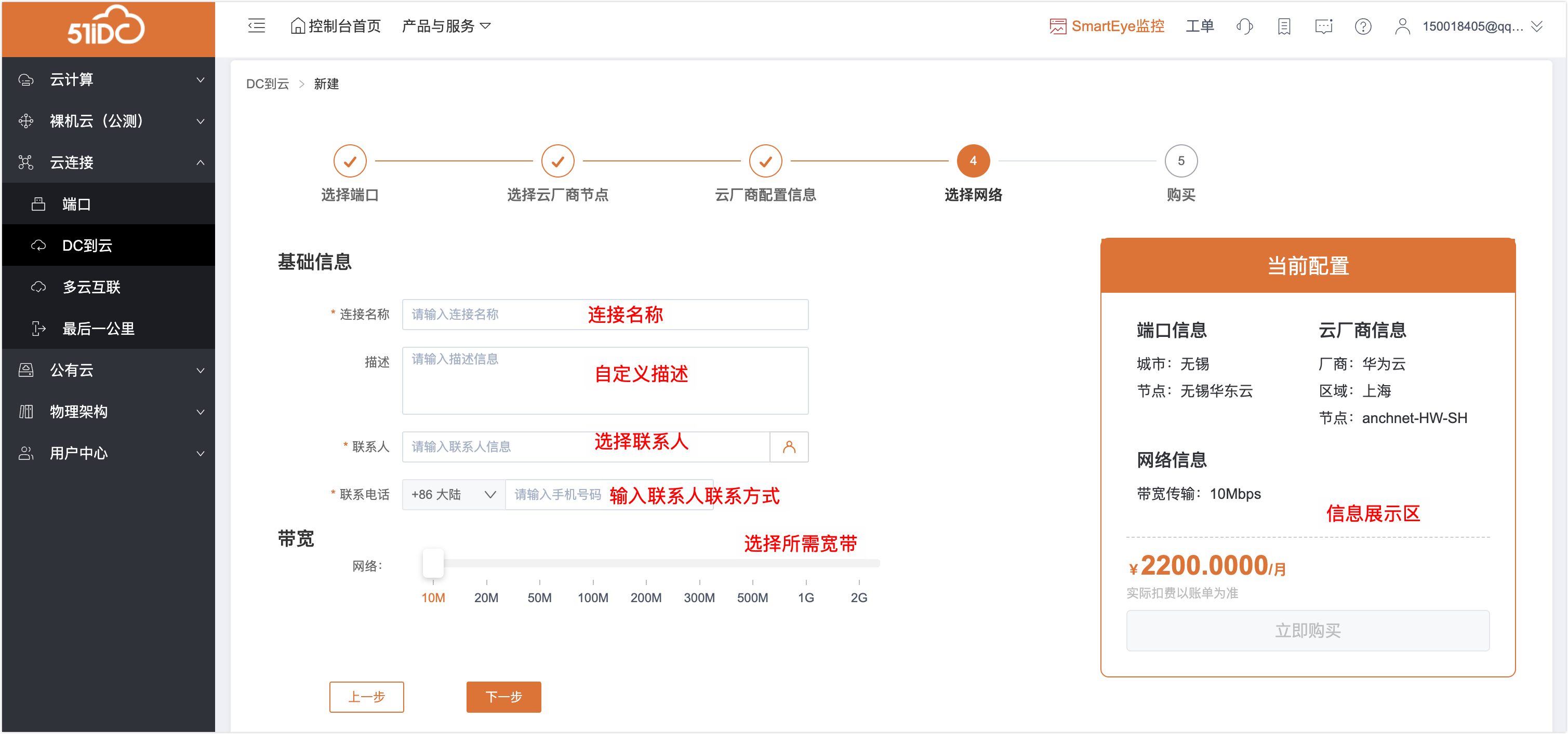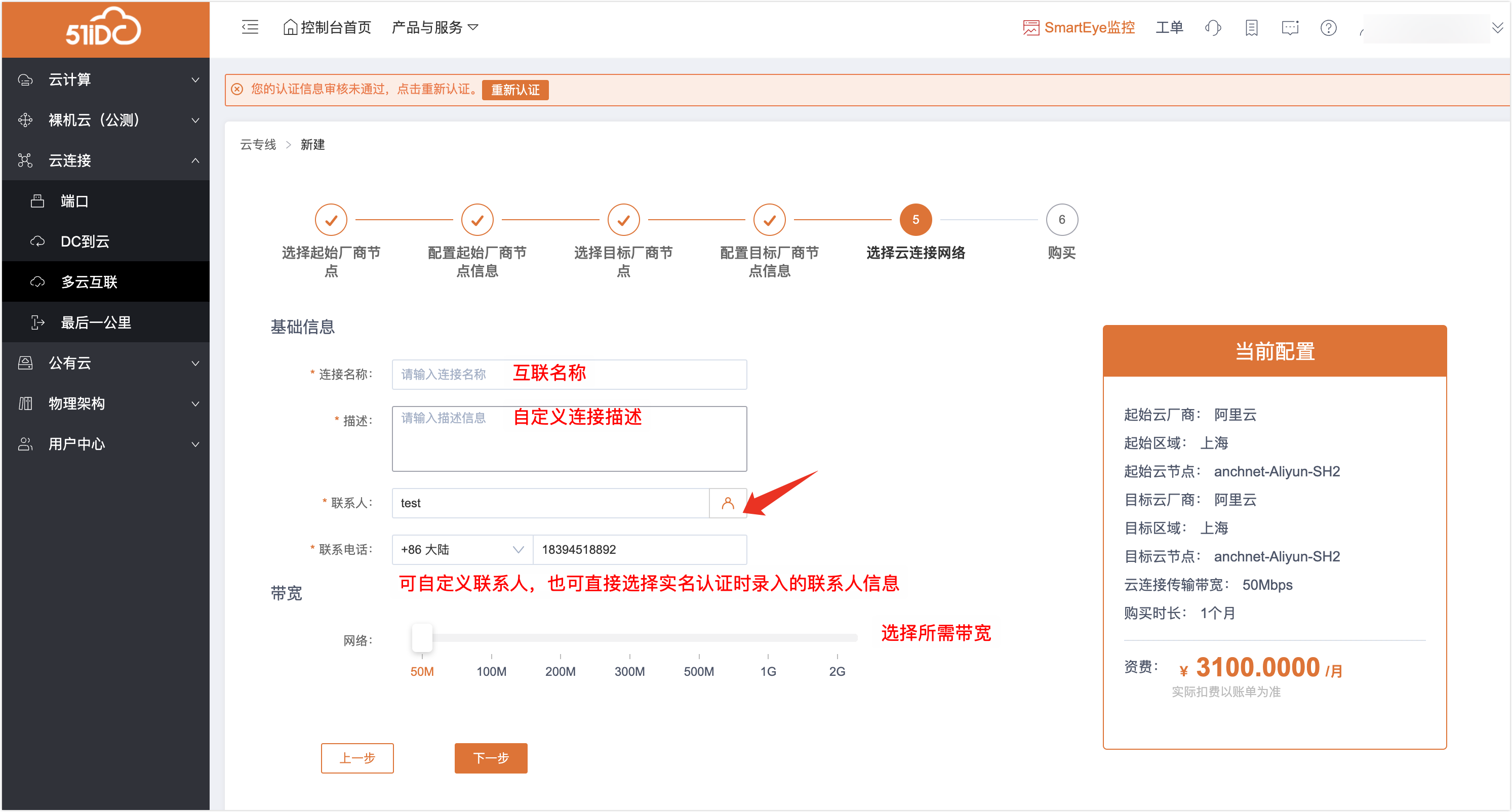 5、第四步:编辑基础信息及带宽