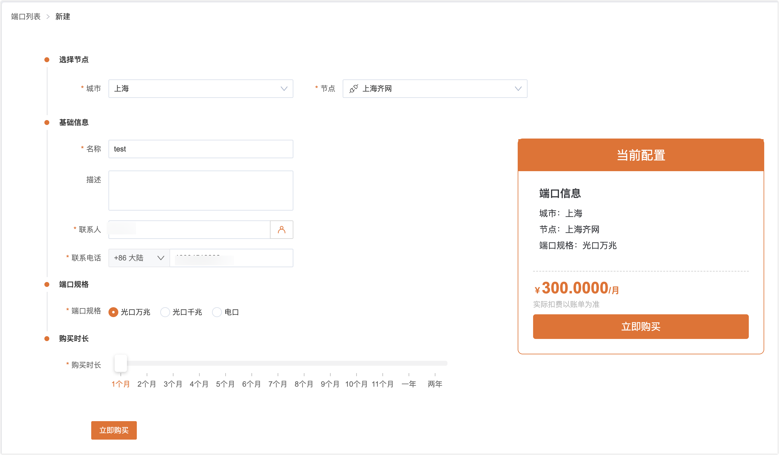 注:此处由于第一步未选择已购端口,故不能进行购买。
