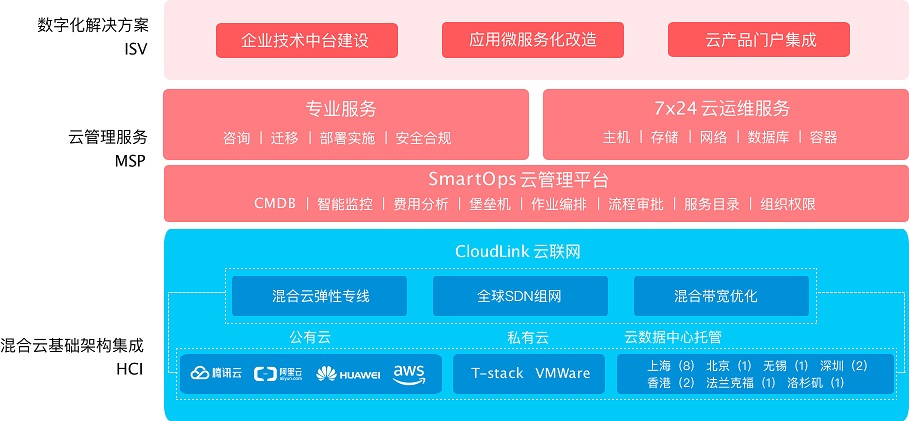 安畅在协助推进腾讯云中台赋能企业的同时,由此依托Cloud Link云联网帮助用户实现多云与混合云基础架构集成,借助SmartOps云管理平台帮助用户实现云管理服务落地。