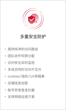 易得客安全加速浏览器基于网络安全及浏览器技术,实现跨境电商多平台多店铺安全访问加速,跨境运营团队高效协作,帮助跨境卖家强化账户安全,简化工作流程,提升运营效率,加速业务成长。